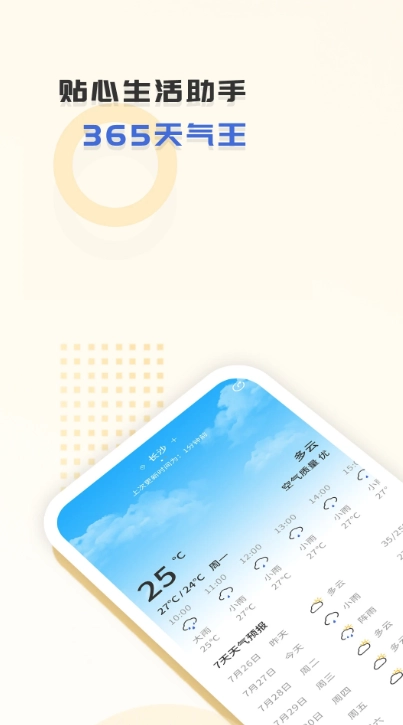 365天气王是一款体积小巧且完全免费的天气预报应用,能为用户提供精准的天气资讯和空气质量信息。用户只要选定所在城市,就能查看当前天气状况、未来24小时的每小时天气预报以及未来7天的天气走向,该软件支持空气质量指数的实时更新,方便用户第一时间掌握环境变化情况。