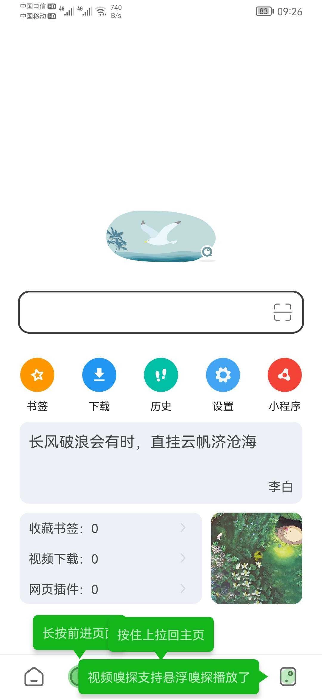 2、【极速浏览】瞬间高速启动,看视频两倍速;