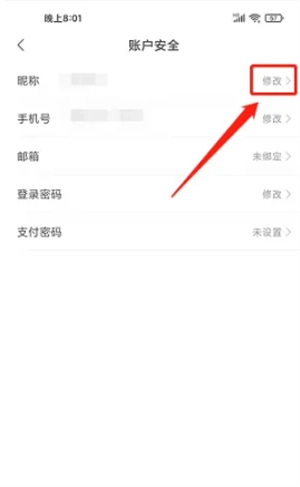 3、来到账户安全页面,点击昵称右边的【修改】。