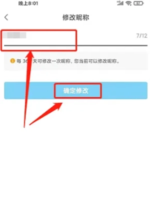 4、进入昵称修改界面,在相应位置输入新昵称,然后点击【确定修改】按钮。