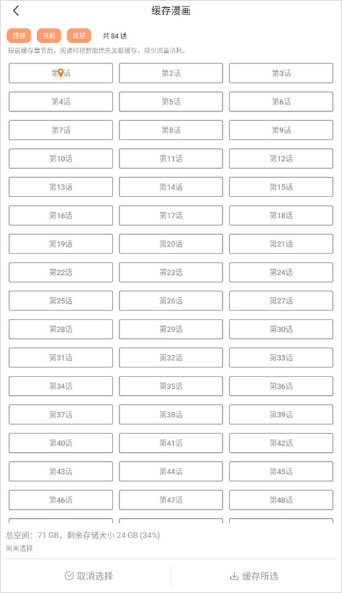 2、选择需要缓存的章节,点击确认即可完成缓存操作。
