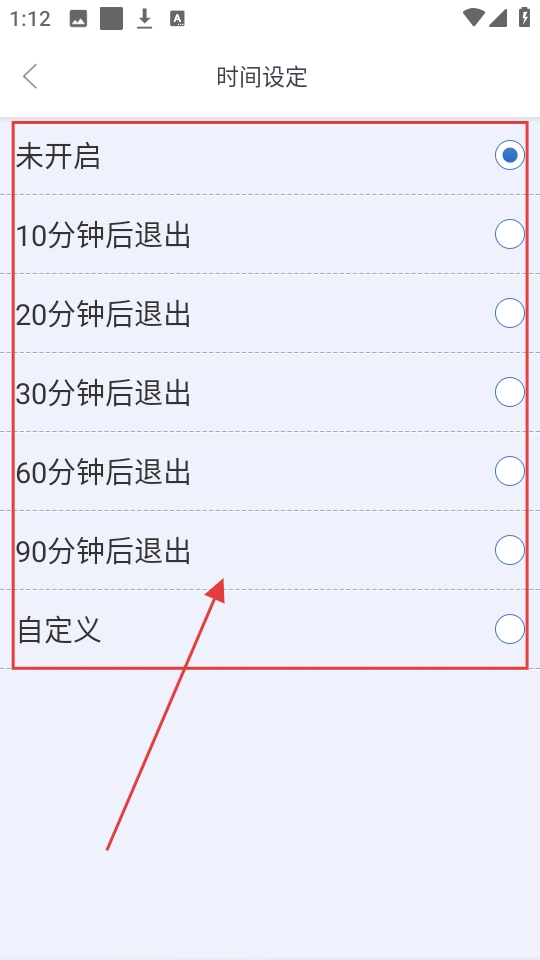 4、在时间设定页面可以选【10分钟后退出】【20分钟后退出】等时长哦,根据需求设置超方便的呀。