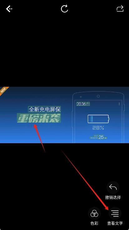 3、扫描结束后,选中图片里的文字,点击右下角的“查看文字”按钮。