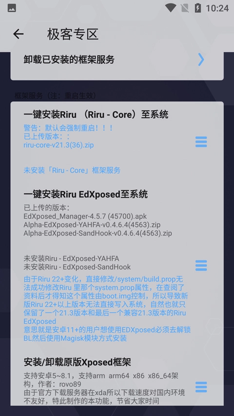 进入极客专区,可安装以及卸载xposed框架;
