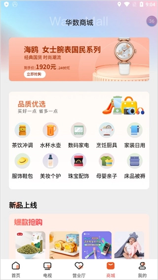 在“商城”板块,用户能够选购茶饮冲调、数码家电、美妆个护、珠宝配饰等各类商品。