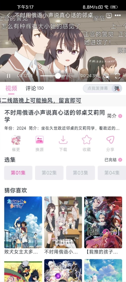 2、浏览推荐的动漫列表,从中挑选一部自己喜欢的作品,点击后就能开始播放。