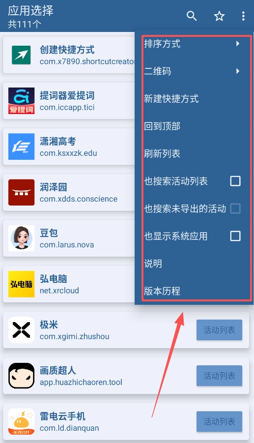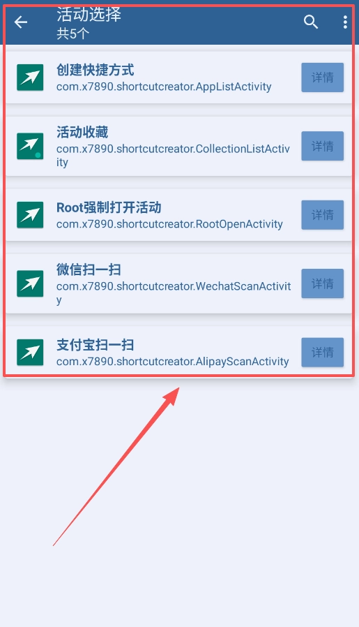 二、进入并选择具体活动。点击应用条目下的“活动列表”,即可查看该应用中所有能够创建快捷方式的活动。