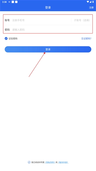 在登录页面,依次填写【注册手机号】和【密码】,勾选相关协议后点击【登录】按钮,即可进入平台系统。