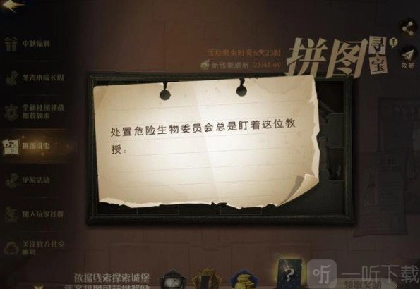 《哈利波特:魔法觉醒》9月29日的拼图寻宝攻略已经开启啦。今日线索为:“处置危险生物委员会总是盯着这位教授” ,玩家得依据此线索寻觅拼图,想必不少玩家会感到迷茫。今天小编就带来详细的位置分享,感兴趣的玩家快来瞧瞧吧!