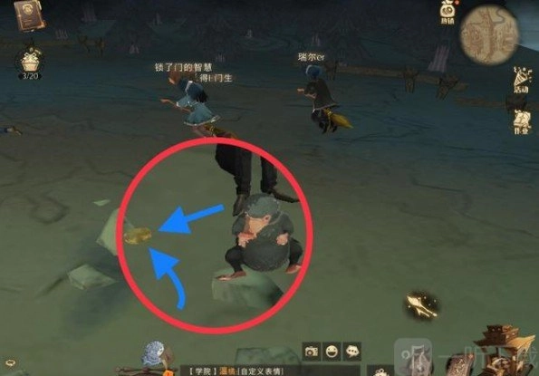 想必大家都清楚,这条线索所指向的正是海格。然而,当我们前往海格小屋探寻时,无论是小屋的外部还是内部,都寻觅不到头顶带有线索标识的NPC。实际上,大家并没有找错地方,这条拼图线索就藏在海格小屋外面的那片空地上。