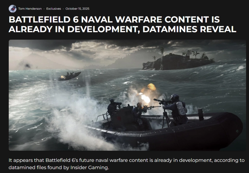 根据外媒发现的数据文件,《战地 6》似乎正在开发海战相关玩法。