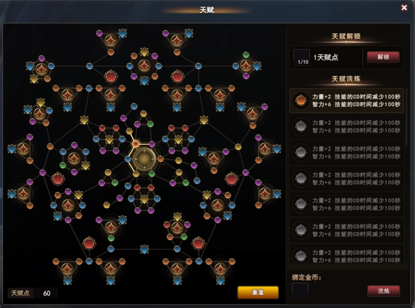 天赋系统设有不同类型的槽位,其中普通天赋槽位数量为124个,激活后可提升生命值、魔法值、活力值、伤害吸收能力、命中与闪避属性,同时也能增加六维属性;高级天赋槽位共36个,主要提供大量攻击力与防御属性的加成;绝顶天赋槽位有6个,可带来高额生命值及暴击率等二级属性的提升;专精天赋槽位为25个,不仅包含大量攻击属性、六维属性和二级属性加成,还有能修改技能效果的特殊天赋,激活后的专精天赋槽还可通过洗练操作,获取更优的数值或效果加成。所有天赋槽需沿着可连线的路径逐步解锁,且支持随时重置并重新选择配置。每个赛季结束后,天赋系统会进行全面重置,并在新赛季根据玩法需求做出相应调整。