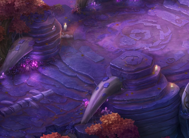 盘丝岭的主色调是诡谲的紫色,地面也不例外,很容易让人联想到蜘蛛、中毒这类危险的事物。但最让我觉得毛骨悚然的,还是地图边角那些紫色的玩意儿——远看还以为是花朵,凑近了才发现全是虫卵!