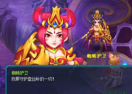 蝎子护卫提到的那位前辈,想来就是这位蜘蛛护卫了。毕竟蜘蛛才是盘丝岭的“自家人”,确实要更负责任些——单看她的神情就透着一股可靠劲儿,喊出的口号也掷地有声,绝对是门派里备受信赖的前辈。