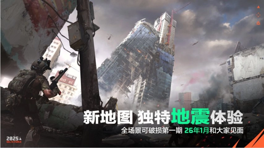 全场景可破损第一期,将在26年1月的全新地图中和玩家见面,将带给大家独特的地震体验。玩家在2026年1月可体验。2026年下半年将进行引擎升级,采用UE5,实现品质革新。