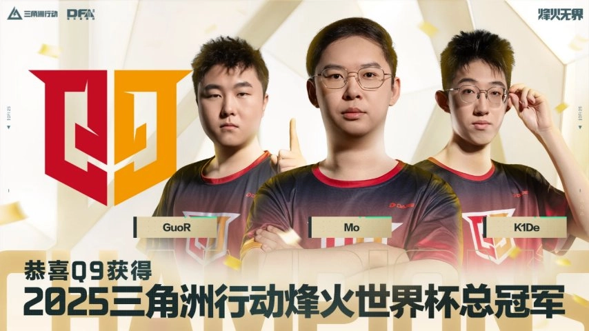 荣耀加冕,问鼎世界!恭喜Q9(中国大陆赛区)夺得2025烽火世界杯总冠军,Q9.K1De、Q9.Mo、Q9.GuoR共同举起这座象征最高荣耀的奖杯!在总决赛中,他们以无可争议的枪法发挥和赛场统治力,征服赛场!
