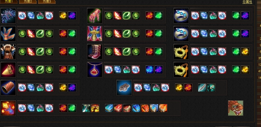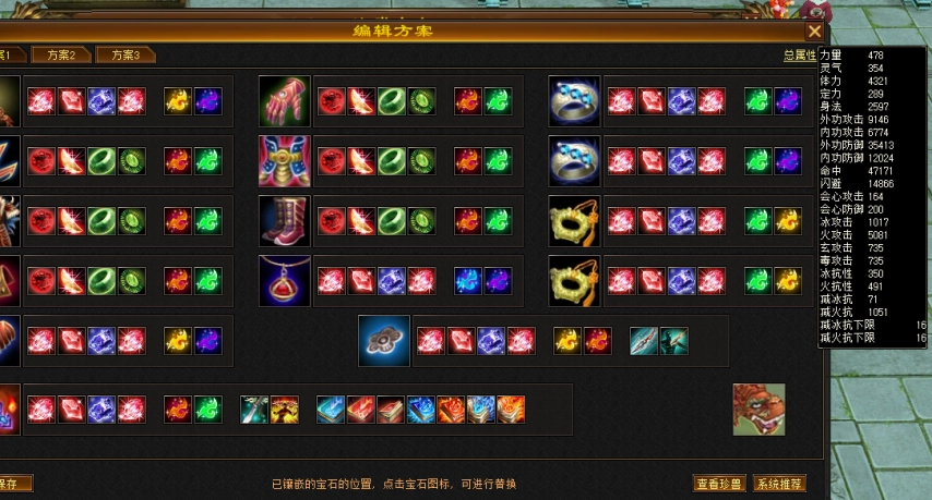 旁边还有三个方案页,随时可以根据对手的门派,切换不同的抗性石头。