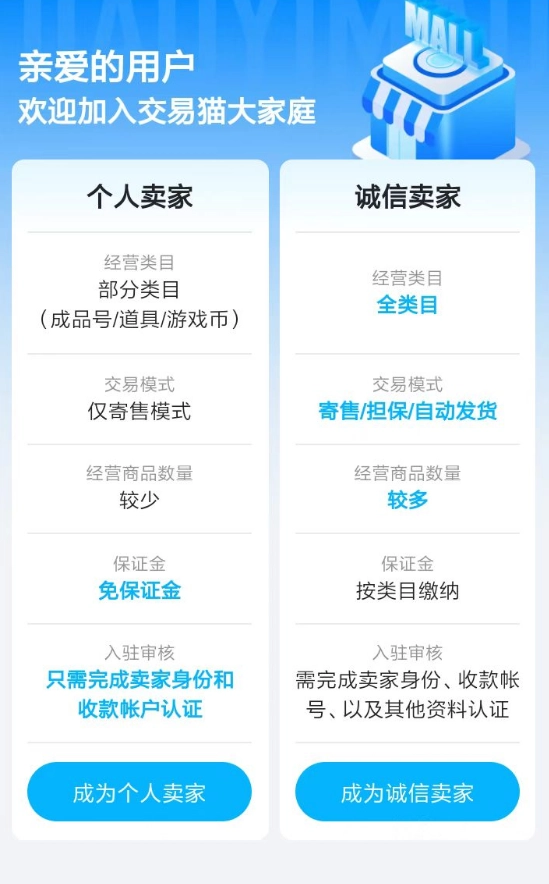3、对于那些实力已经相当强悍的玩家来说,游戏带来的趣味性已然有所降低,与其直接放弃游戏退坑,倒不如在交易猫平台上把自己的账号卖掉。出售流程很简单,只要申请成为卖家,就能把游戏账号发布出去了。