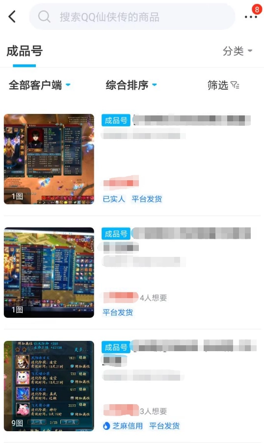 2、首先,对于那些没有太多时间投入游戏发育的玩家而言,进入交易猫平台后,能够以十分实惠的价格直接买到一个优质的精品游戏账号。这类账号不仅能提升大家的游戏体验,还能让玩家提前了解到游戏后期的部分设定,大家只需进入QQ仙侠传的专区就能获取到这类账号。