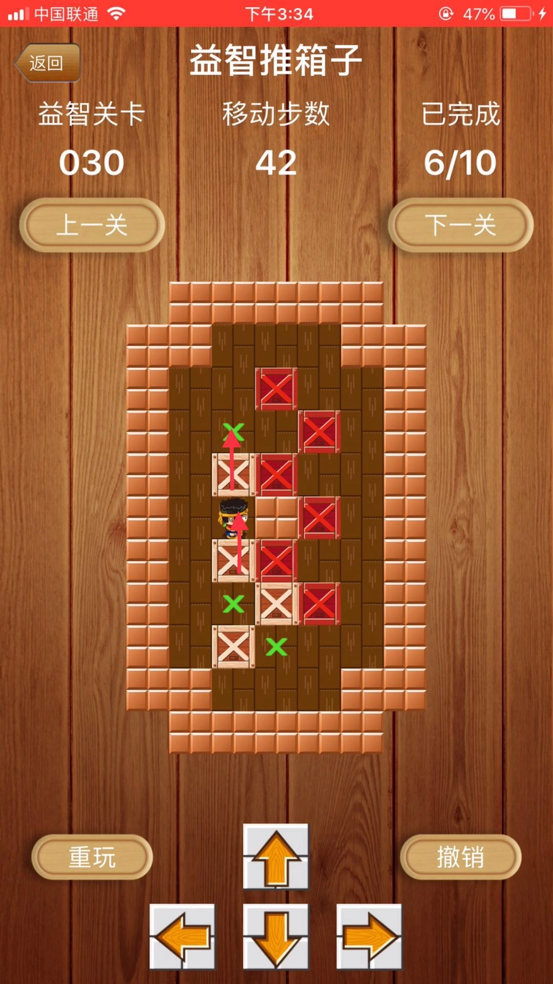 10、最后再绕一圈走到右侧,将最后一个箱子向左推动,使其抵达绿色的“x”标记处,即可顺利通关。