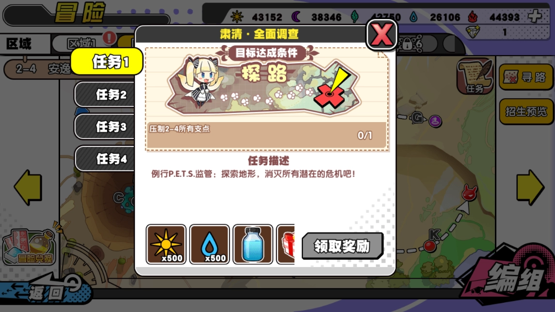 (1)肃清·全面调查:例行P.E.T.S.监管:探索地形,消灭所有潜在的危机吧!