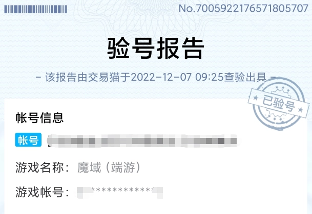 2要是大家担心买到账号后觉得不值,可以让平台帮忙查验账号情况。平台会委托第三方机构进行查验,只有确认账号没问题后才会允许上架售卖。所以,大家买到附带“验号报告”的商品时完全可以放心,毕竟这些报告都是经过平台认可的。