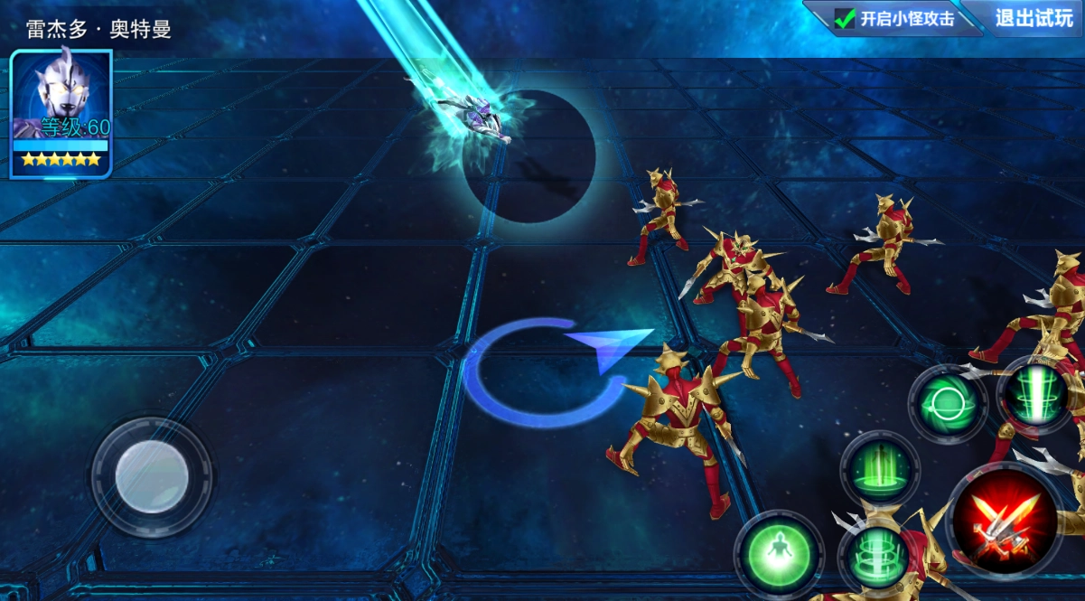 接下来给大家讲讲雷杰多奥特曼的玩法技巧。这位奥特曼属于比较刚猛的类型,技能大多偏向近战,而且具备不少能干扰对手的技能机制。他的基础技能2可以使周围敌人进入时间暂停状态,这个技能和终极技能1搭配使用能产生极佳效果——由于终极技能1释放期间自身无法移动,很容易遭到敌方攻击,通过这样的组合就能弥补这一短板!