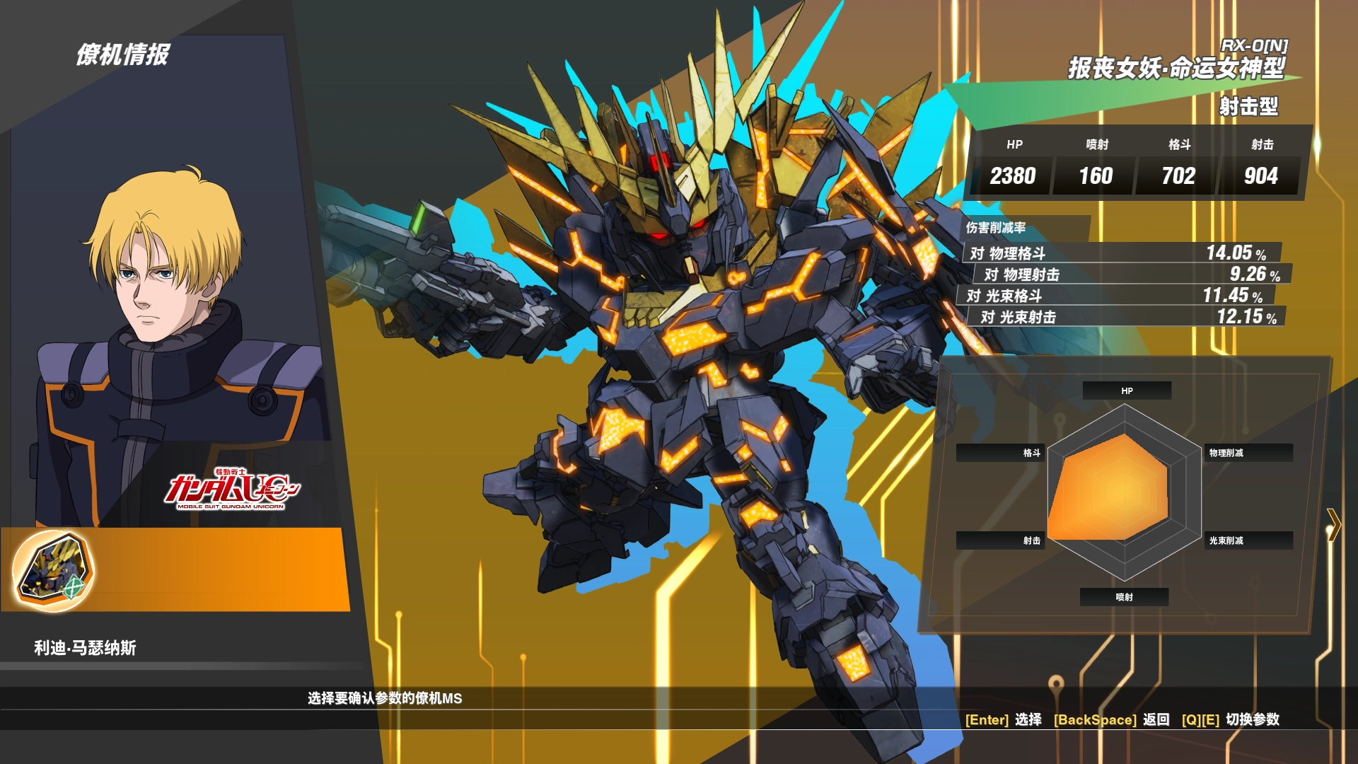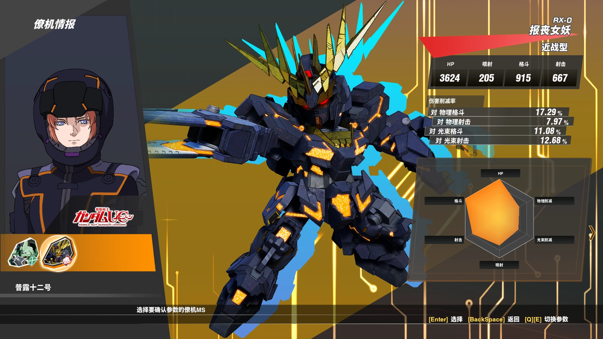 部分机型存在不同的改造衍生系列,以报丧女妖为例,其基础款属于格斗型机体,但经过改造后便转型为射击型高达。这类射击型高达通常在射击属性上数值最高,大多处于700到800的区间。不过报丧女妖的改造版本初始数据表现一般:血量490,喷射能量仅120,格斗属性243,射击属性328。客观来说,这个数据相较于其他射击型高达确实显得有些单薄。好在射击型高达本身容错率较高,并且自带5个修理包——毕竟这类机体的位移能力普遍偏弱。至于其他性能更优的射击型机体,这里就不展开赘述了。