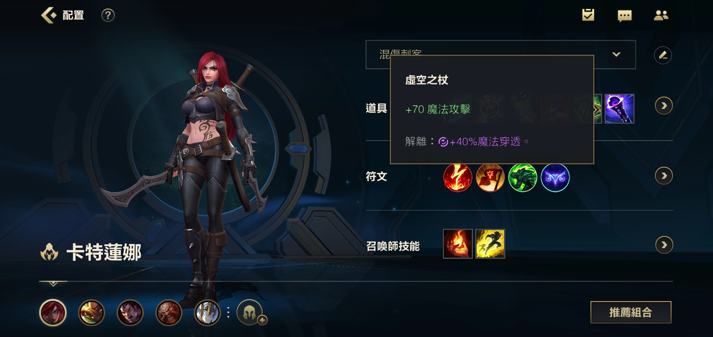 第六件装备选择法穿棒即可,这件装备能增强卡特后期对抗坦克的能力,为她提供40%的法术穿透效果。