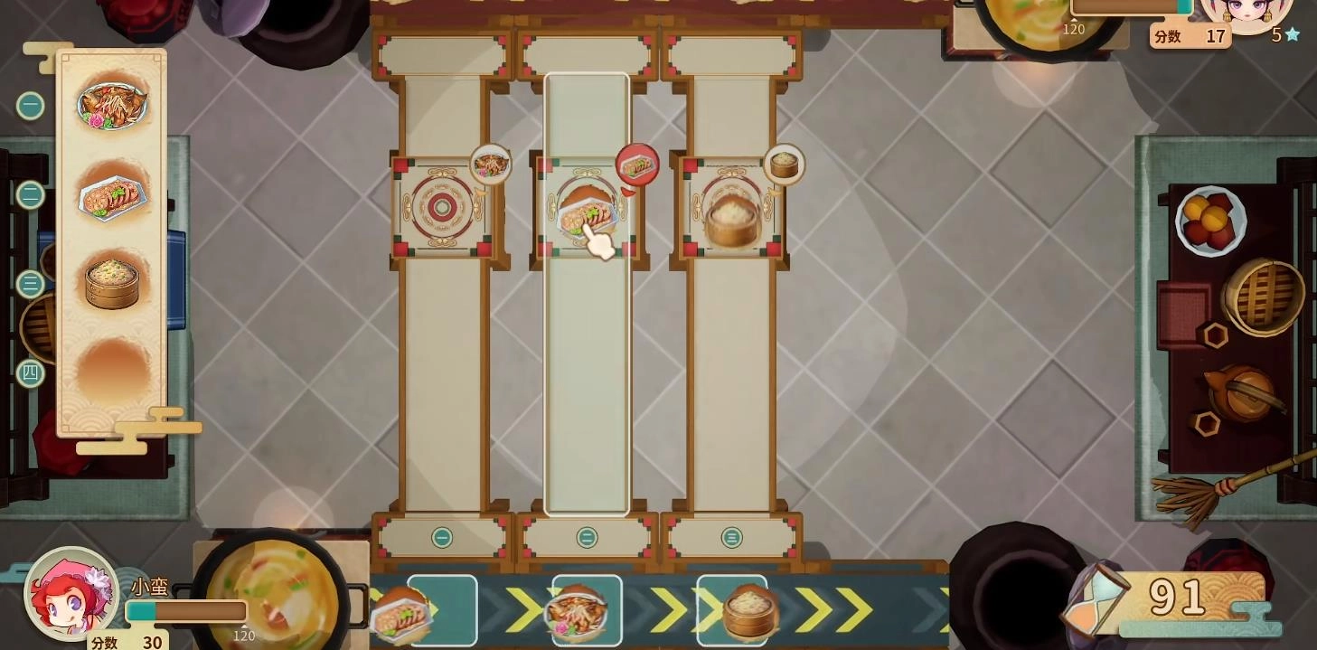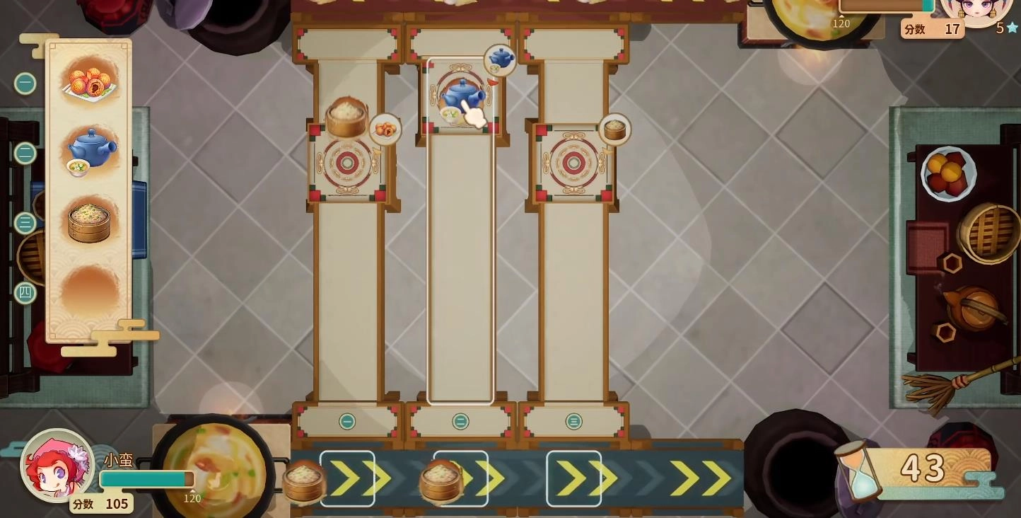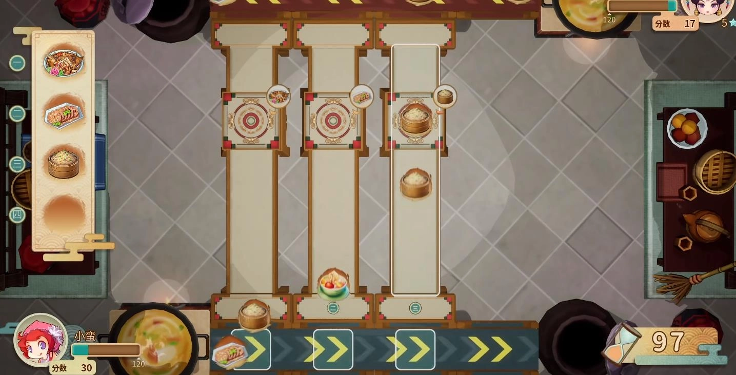 在玩法操作方面,玩家需要依据指定菜单,完成一道道食物的传送任务。简单来说,只要把食物放置到正确的传送带上即可。传送的食物数量越多,获得的积分就越高,而积分更高的那一方,无疑就是这场比拼的赢家。