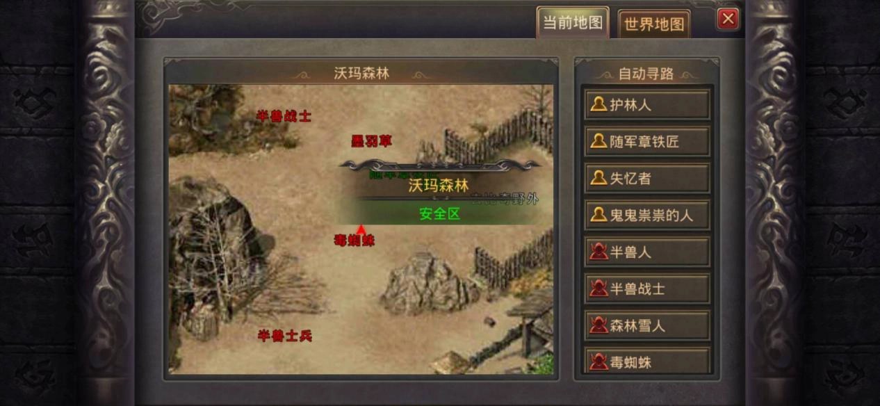 沃玛森林是通往沃玛神庙的入口,而沃玛教主就潜藏在沃玛神庙里,因此要击杀沃玛教主就得先经过沃玛森林。从比奇野外能直接进入沃玛森林地图。沃玛森林除了连接沃玛神庙,还通往封魔谷和蛮荒深林,封魔谷是40级玩家获取装备的理想之地。