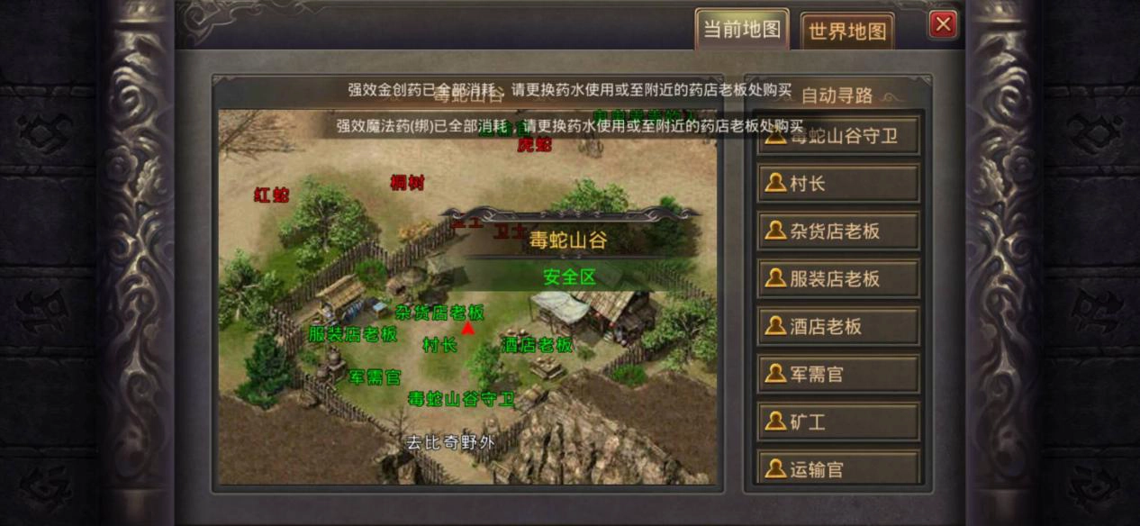 玩家可以从盟重城或比奇野外前往毒蛇山谷,这里能让玩家挂机练级至30级,同时它也是前往矿区的唯一地图,而采矿是玩家每日在矿区必做的事情。