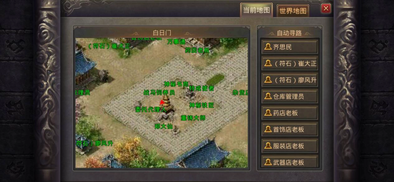 白日门主城作为一座独立城池,玩家需在大地图使用飞鞋道具方可传送抵达。该主城区域会刷新白日门宝箱,开启宝箱可获得白日门残卷,此残卷可用于兑换强效技能。此外,从白日门主城还能前往蛮荒深林与蛮荒林地,这两处地图均为70级玩家挂机刷怪的理想场所。