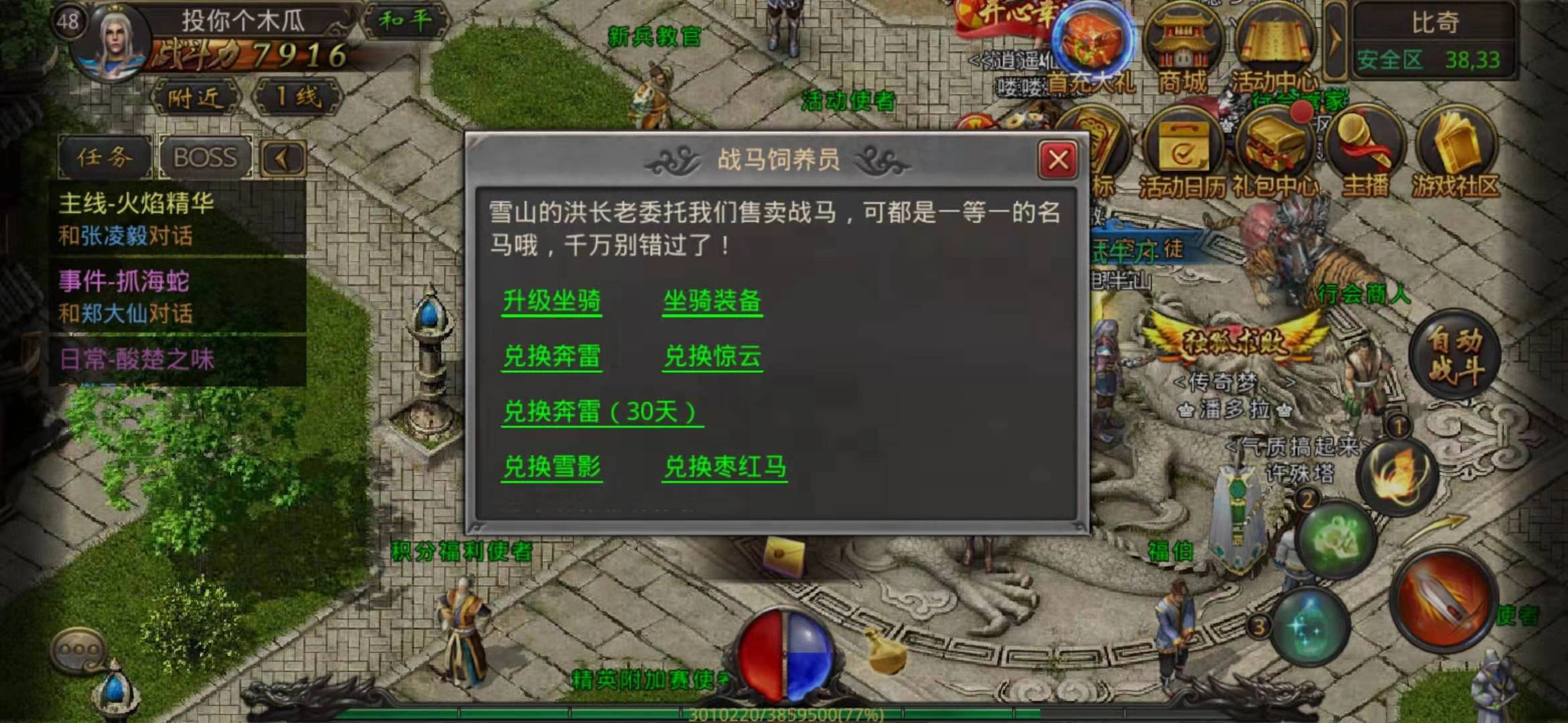 如果觉得入手踏浪或雪影有些吃力,不妨看看当前热销的两款优质坐骑——惊雷与奔雷,只需通过活动获取对应的兑换券即可兑换。