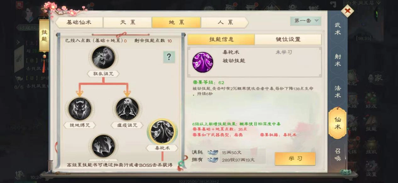 地系仙术士同样得掌握瘟疫诅咒、毒袍术与地狱爪这三项技能。其中,瘟疫诅咒能让目标进入虚弱和破甲状态——虚弱效果可增加僵尸王承受的伤害,破甲效果则能降低其物理防御,这对物理防御较高的僵尸王而言有着显著的克制作用。