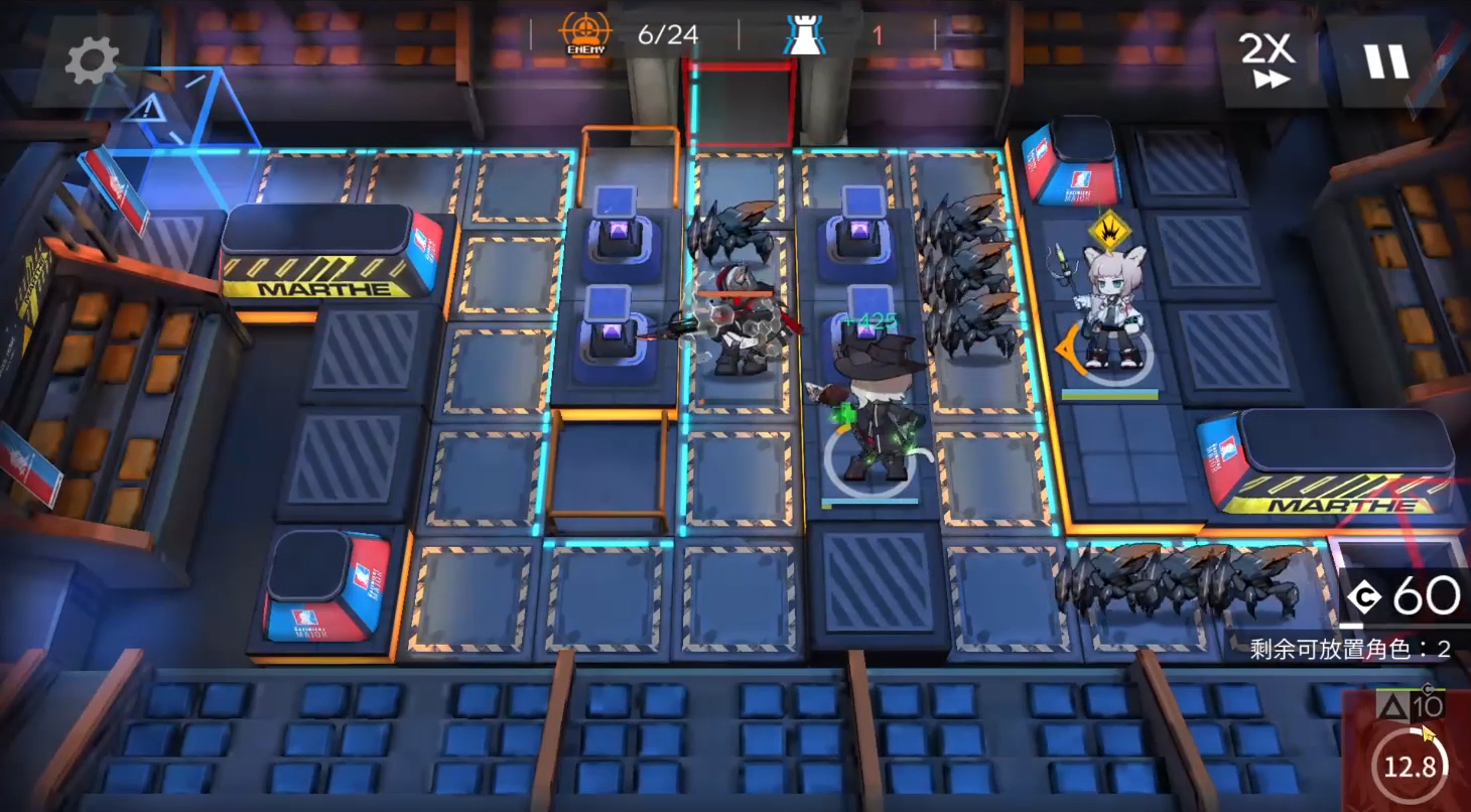 接下来的操作就比较简单了,夜烟的技能轴没有那么严格,技能好了就用就行。我们只要确保夜烟开技能的时候,场上有干员砾在吸引仇恨,等夜烟技能结束后,再把砾撤下来等下一轮冷却,部署费用和再部署时间都足够用。