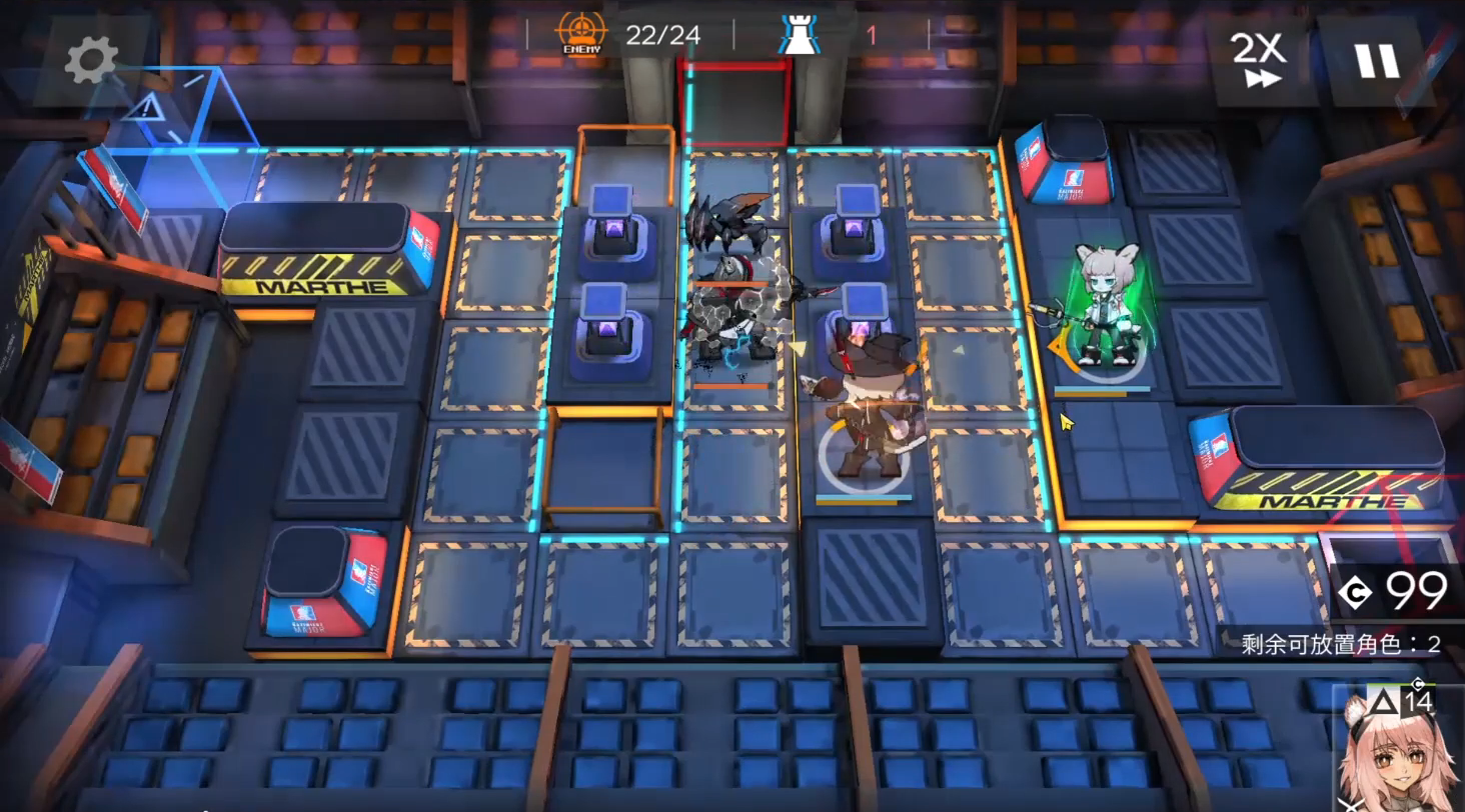 进入关卡后便能发现,这一关已预先布置好了医疗干员苏苏洛,我们可调用的干员里,除了夜烟,还有快速复活类型的干员砾。地图正中间设有卡西米尔独有的电磁装置,该装置能让途经的敌人速度减慢,进而便于我方进行输出操作。
