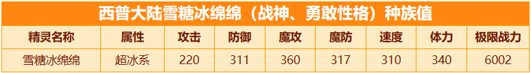 冰系精灵里有一只实力强劲且特别适合新手的精灵,它就是雪糖冰绵绵。这只精灵不仅掌握着冰系技能,还具备超高的体力、出色的魔法防御与魔法攻击能力,并且能在特定战斗范围内提升自身速度与体力,在冰系精灵中享有“战神”的称号。