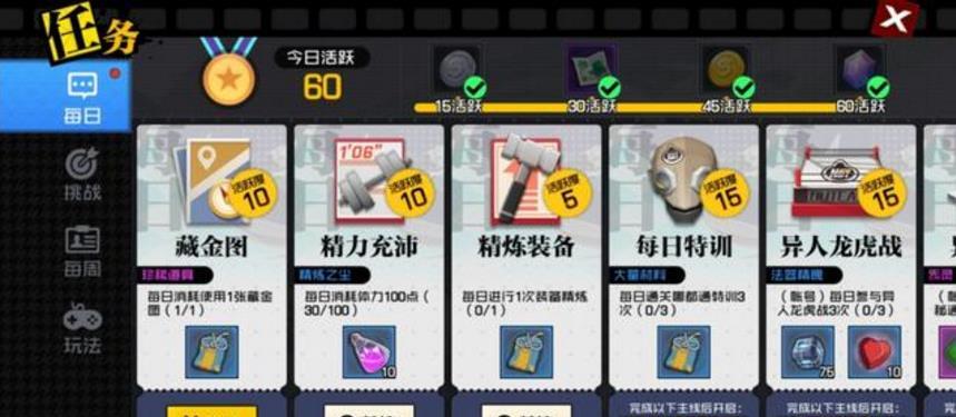 完成上述所有活动,就能达到60点活跃度,进而获得5000金币和250魔钻。我看了下时间,小编总共用时不到20分钟。这是小编遇到的能最快达成满活跃度领取奖励的游戏。