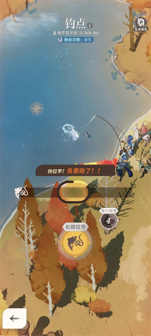 寻觅金色钓点,若钓到普通鱼便放生(此操作不消耗钓鱼次数),直至钓到异色鱼再拉杆收线。