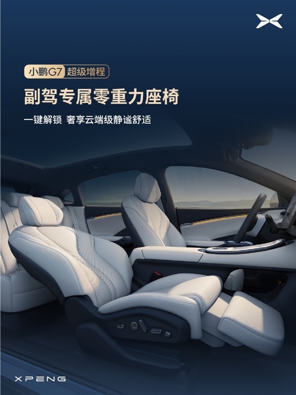 内饰方面,新车搭载8.8英寸科技岛仪表台与29英寸全场景HUD抬头显示,集成隐藏式空调出风口,同时升级了星瀑式氛围灯,支持256色无极调节。另一款车型小鹏G7超级增程版新增“星暮紫”外观配色,外观配备一体式贯穿灯带和20英寸运动轮毂。内饰配备副驾零重力座椅,全车拥有超20项越级豪华配置。