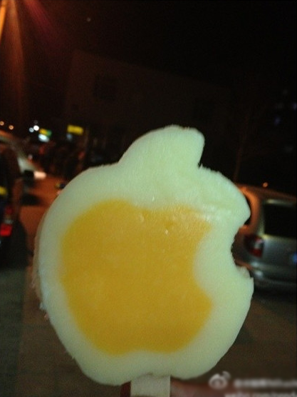 这款“芒果口味”的冰激凌宣称具有浓郁“西式风格”,其外观模仿了苹果的logo,不过看上去更类似一个煎蛋。同一时期推出的还有“雪梨口味”的款式,但它的造型显然和苹果logo不太像。