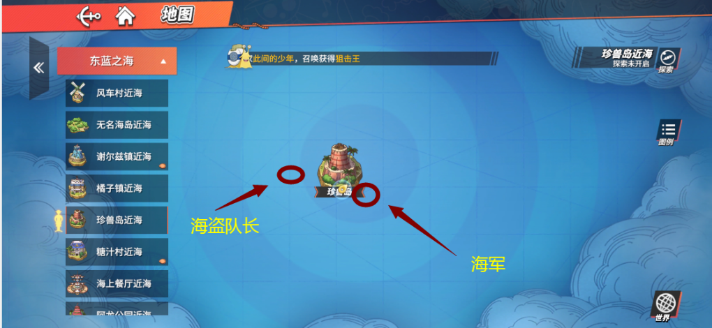 前往【知名岛屿】出海,在知名海盗的正下方找到海盗队长并与其交谈,接着在海盗周围搜寻3个走散的海盗,最后回到海盗队长那里提交任务。