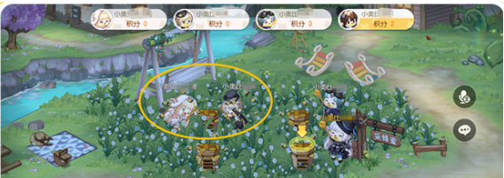 [1打地鼠]位置:地图传送到「青木森林」后,直行至右上方,接着右转,抵达「打地鼠」的位置,此时在叮咚溪流的对面就能看到了。