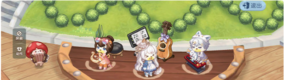 地图传送完成后,向下行进,在左转的位置,能看到舞台上摆放着三种乐器,走到舞台上即可开启演奏功能。