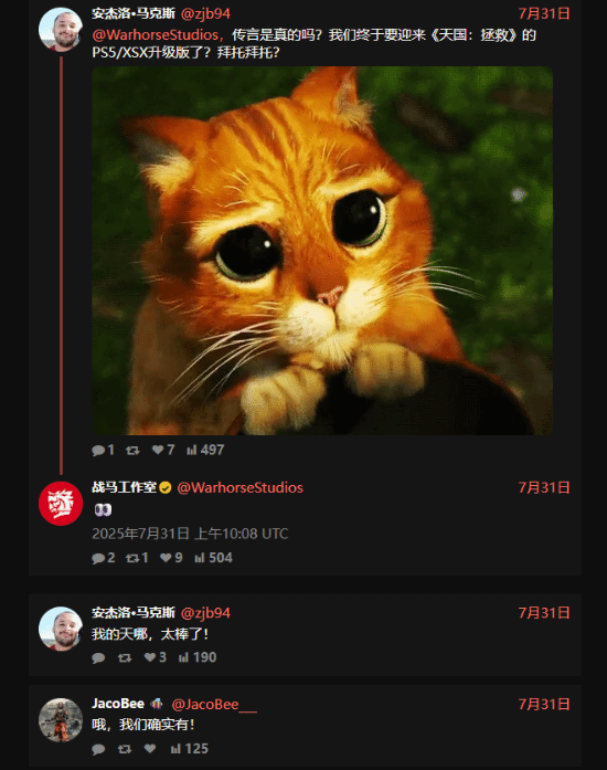 这位玩家早在24年就通过个人渠道知晓了《天国:拯救2》的发售时间,还在7月透露过游戏会推出DLC的消息,此次他又给主机玩家带来了好消息。