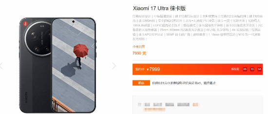 12月25日晚间,小米影像旗舰新品小米17 Ultra系列正式亮相,该系列涵盖小米17 Ultra与小米17 Ultra徕卡版两款机型。售价7999元起的徕卡版上架后很快便销售一空,不少米粉在小米集团总裁卢伟冰的微博评论区分享了自己的订单截图。