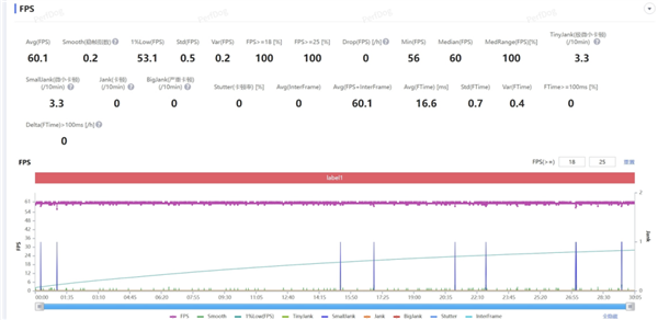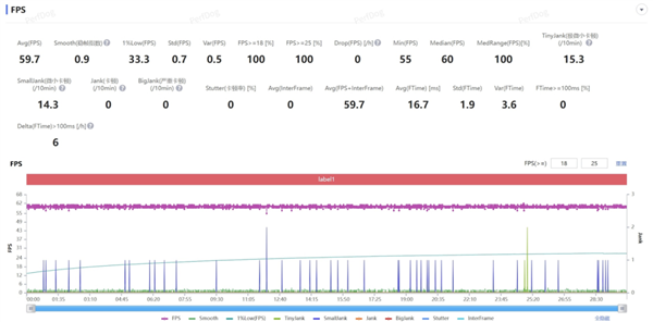 而在压力相当大的 “崩铁” 全高画质匹诺康尼 30 分钟跑图中,荣耀 WIN 也是不负众望,同样跑出了 59.7 帧几乎满帧的成绩。