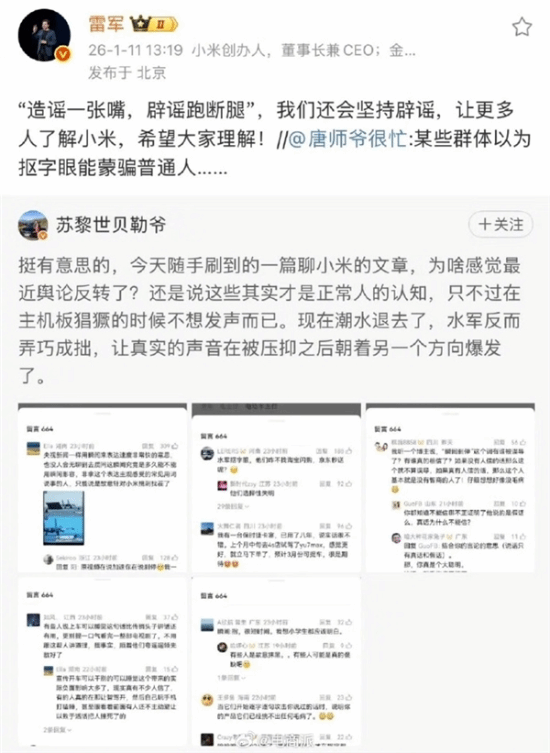 快科技1月14日消息,被水军恶意抹黑的经历确实让雷军心有余悸,如今他在社交媒体上与用户互动时,对细节方面的把控也更为留意了。