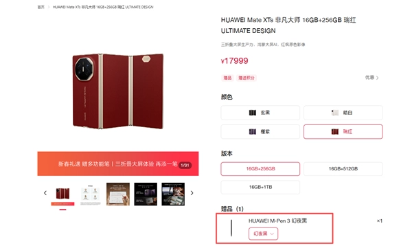 1月26日消息,华为Mate XTs非凡大师三折叠机型官宣推出新年礼遇活动。与Pura 80系列的直接降价不同,此次活动的福利是购机即赠价值599元的华为M-Pen 3手写笔,这款配件对于三折叠设备而言实用性颇高。